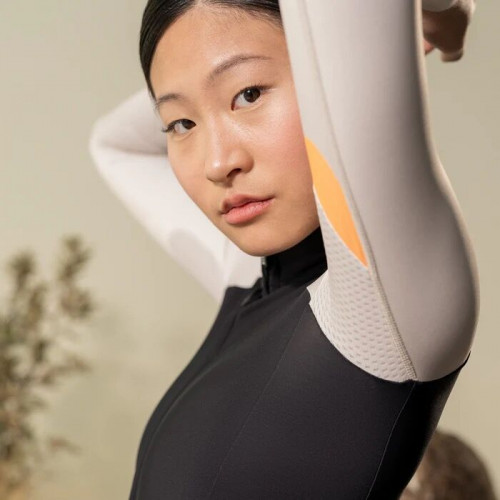 Maillot de manga larga para entretiempo. Ligero, versátil, aerodinámico y muy confortable.